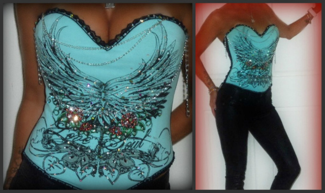 CUSTOM SWAROVSKI EMBELLISHED WINGED GRAHIC CORSET WITH CHAINS