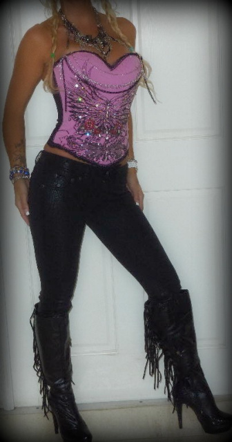 CUSTOM SWAROVSKI HAND EMBELLISHED ROCK TATTOO CORSET PINK WITH CHAIN ACCENTS